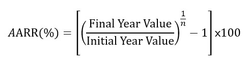 Where Start Value and End Value are the indicator values at the beginning and end of the period, and Number of Years is the time span[22,23].