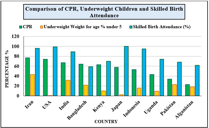 Comparison of CPR, Underweight Children and Skilled Birth Attendance
