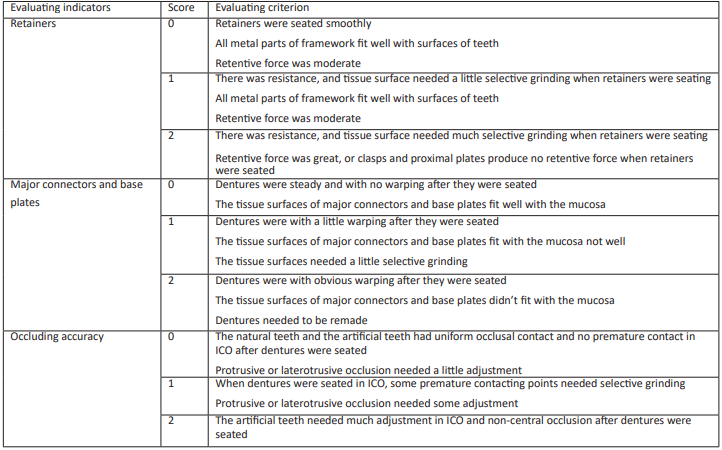 It was one of the technical difficulties in this study how to take digital selective pressure impression for the dentition with posterior free end edentulous area. The tissue structure of the dentition with posterior free end edentulous area was more complicated than that of with non-free end edentulous area. Under the normal occlusal force, the physiological mobility of healthy natural tooth was about 30μm, and the amount of vertical deformation of the alveolar mucosa in posterior edentulous area was up to 0.14-0.35mm. If RPDs were fabricated by using anatomical impressions, the adverse torsion could happen to the abutment teeth adjacent to free end edentulous area and damage periodontal health of the natural teeth when the free end of RPDs was under occluding force. Meanwhile, when the free end saddle subsided, the stress on the alveolar ridge was not well-distributed, which easily caused rapid absorption of alveolar bone and damaged mucosal tissue in edentulous area. Accordingly, the iatrogenic damage of oral hard and soft tissues and the restorative treatment failure in a short period arose. This study referred to the conventional method of taking selective pressure impression [6], and the method of combining wax block with bite registration material, which was easy for clinically operating, was used. Before intraoral digital scanning, mucosa was pressed for 30 seconds, which imitated functional occlusion in free end edentulous area. Then scanning mucosa in edentulous area should be completed rapidly (within 10 seconds) before mucosal deformation was restored. The experiment results showed that the method of taking digital selective pressure impression was clinically feasible to fabricate RPDs for dentition defect of Kennedy Class I and Kennedy Class II. Because the border of the base plate in edentulous area was hard to determine accurately on the scanner screen, and the method of taking digital selective pressure impression in this study was difficult to implement, the cases with mandible dentition defect of Kennedy class I were not included and discussed in this study.