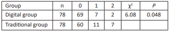 Data of digital impression collected directly from the patient’s mouth were stored in the scanner computer and sent to the dental lab via internet. Intraoral data were received and modified if necessary by the technician, and then the master resin models were fabricated in 3D printer. RPDs with bilateral retainers in this study were fabricated with the method of intraoral digital scanning combined with 3D printing resin models, and the clinical evaluation showed that the adaptation of retainers, including clasps, proximal plates and occlusal rests, and the occluding accuracy of RPDs with the digital method were better than those of RPDs fabricated with the traditional method. The possible reasons analysed were as followed: firstly, although the deformation rate of silicon rubber impression material was much less than that of alginate materials, silicon rubber impression still had permanent deformation amount of 0.2% -0.3%. Furthermore, silicon rubber impression could be affected by surrounding factors, such as temperature, disinfectant, etc. Therefore, the accuracy of prosthesis fabricated on the models made of the traditional materials was easy to be affected. However, the way to transfer digital data was not easy to be affected by the above factors[10]. Secondly, the tray bearing impression material was placed into patient’s mouth, which could lead to saliva increasing, violent activities of tongue and soft palate, etc. The accuracy of the impression was affected by these factors. Thirdly, Pure expansion phenomenon could happened in the process of dental stone hardening, and the expansion rate was about 0.085%. In addition, the range of crystal particle size of dental stone model was 12-25μm, and the crystal was prismatic or irregular in shape. However, compared to dental stone crystal, the particle of 3D printing resin material was smaller and well-distributed, and the capability of duplicating delicate structure was better. Fourthly, defects in various parts could be produced in the process of making dental stone models, and the risk of wear existed when storing and transferring models. Fifthly, master models were possible to be damaged in the process of fabricating RPDs. Lastly, the stable occlusal record in ICO could be acquired by intraoral digital scanning at the first visit, but the maxillomandibular relationship was recorded at the second visit in the most cases with dentition defect when the traditional method was used. In this study, there was no significant difference in the clinical adaptation of major connectors and base plates of RPDs fabricated with two methods. The reason analyzed could be that the risk of wear or damage to the edentulous alveolar ridge and the palate on the master model was smaller compared to the prominent part of the dentition.