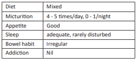 Systemic Examination: - On examination, patient was found to be conscious and well oriented to time, place and person. Assessment of Central nervous system, cardiovascular system, respiratory system and musculoskeletal system of patient was found within normal limits clinically. No clinical abnormality was detected on per abdomen examination.